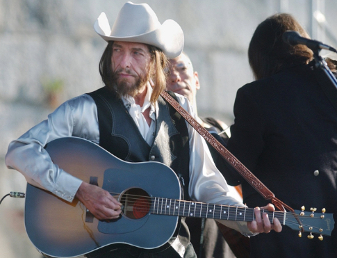 AUGUST 3, 2002 – Bob Dylan returned to the Newport Folk Festival (now known as the Apple and Eve Newport Folk Festival) after an absence of 37 years to perform a 2 hour show of 19 songs while enigmatically wearing a false beard and a wig.