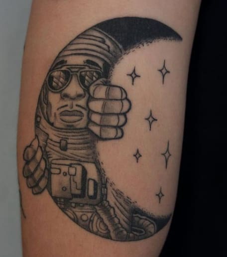 - “Man on the Moon” Artwork: Consider getting a tattoo of the album cover or elements from it. It often features Kid Cudi’s silhouette against a moonlit backdrop.