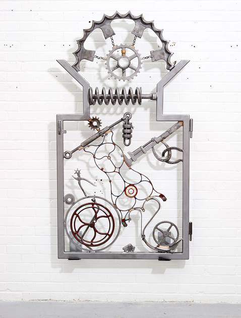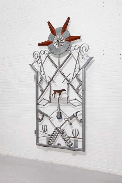 A detail from one of the pieces on display during a press preview event of artworks by American singer songwriter Bob Dylan, entitled Mood Swings, at the Halcyon Gallery in London Thursday Nov. 14, 2013. The exhibition of new artworks by Dylan, includes iron works alongside paintings which are exhibited and on sale from the gallery.
