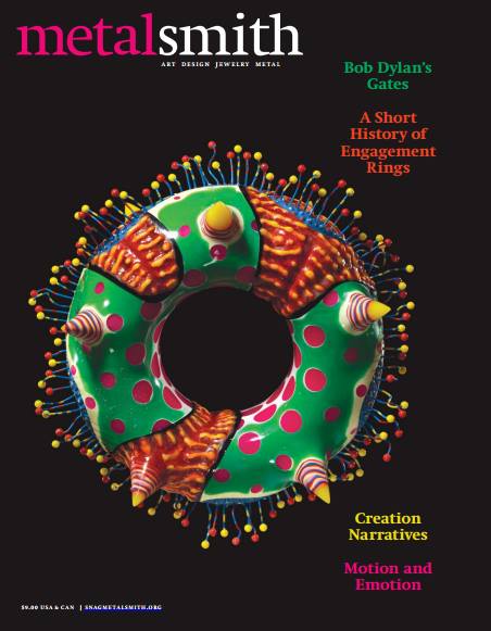 Society of North American Goldsmiths. Metalsmith : art design jewelry metal. Clinton, Ohio: Society of North American Goldsmiths. Volume 34, Number 3, June 2014, pages 28-35. 2168-4413