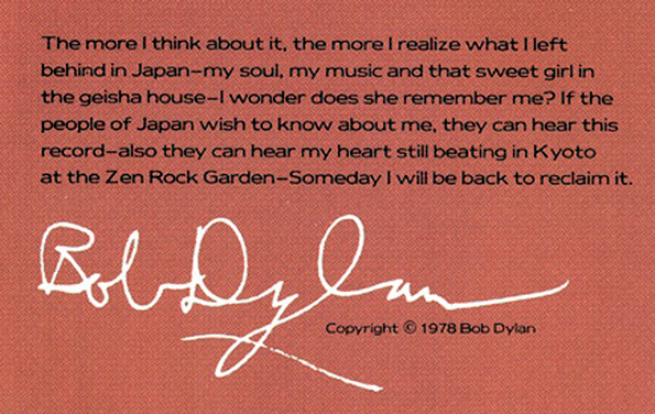 Bob Dylan first visited Japan in 1978 as part of a world tour – Far East Tour 1978