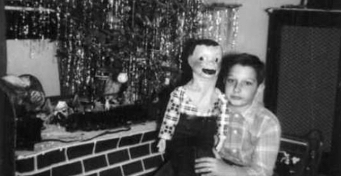 Robert Zimmerman (later known as Bob Dylan) and his ventriloquist dummy Peco’s Pete, Christmas 1950.